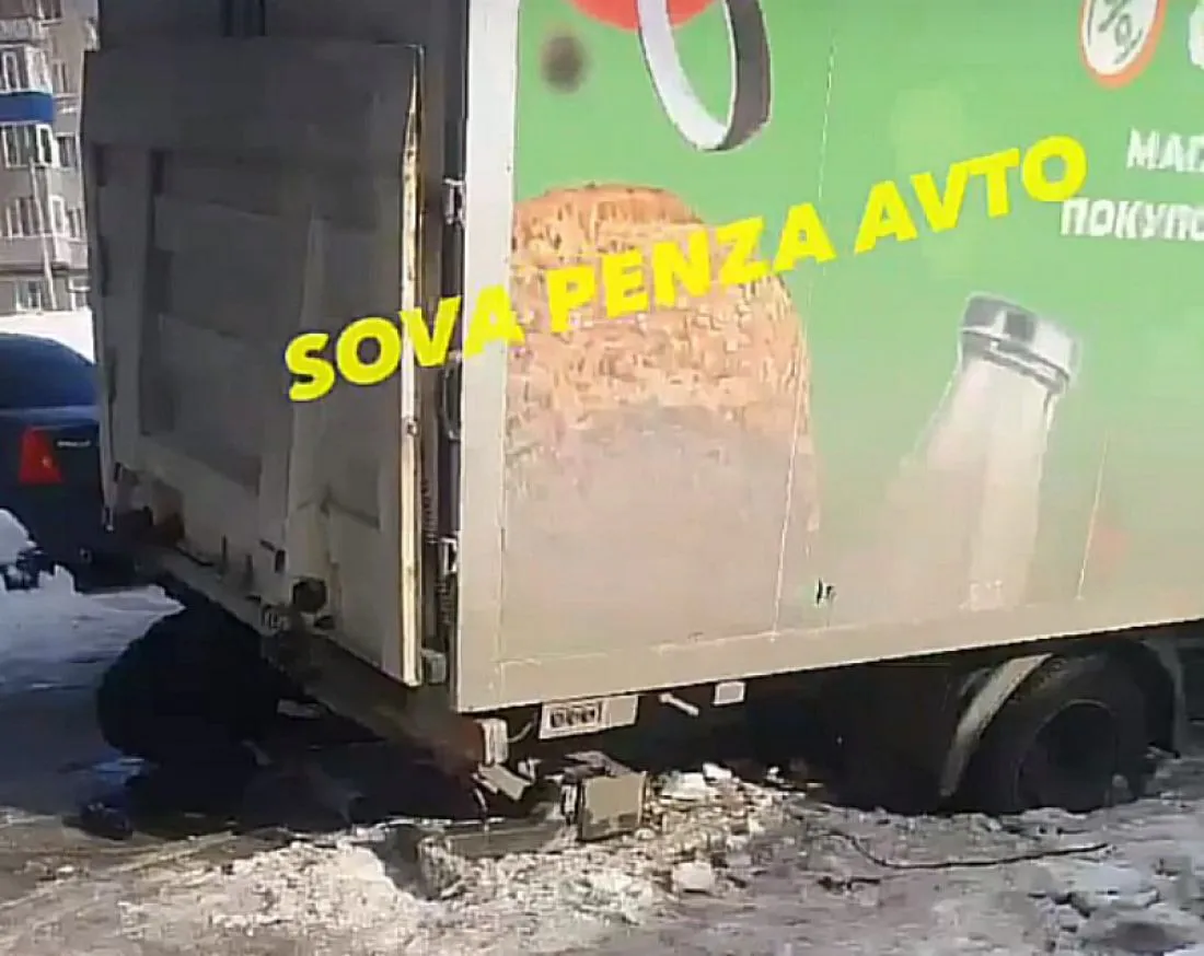 29 февраля в Пензе на улице Рахманинова в ледовой ловушке застрял грузовик