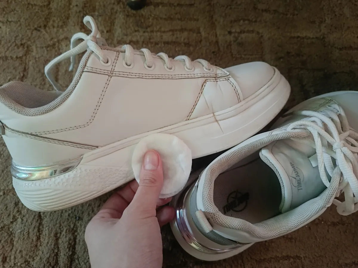 3 капли копеечного средства на ватный диск - и трем белую подошву: уйдут даже самые стойкие желтые пятна