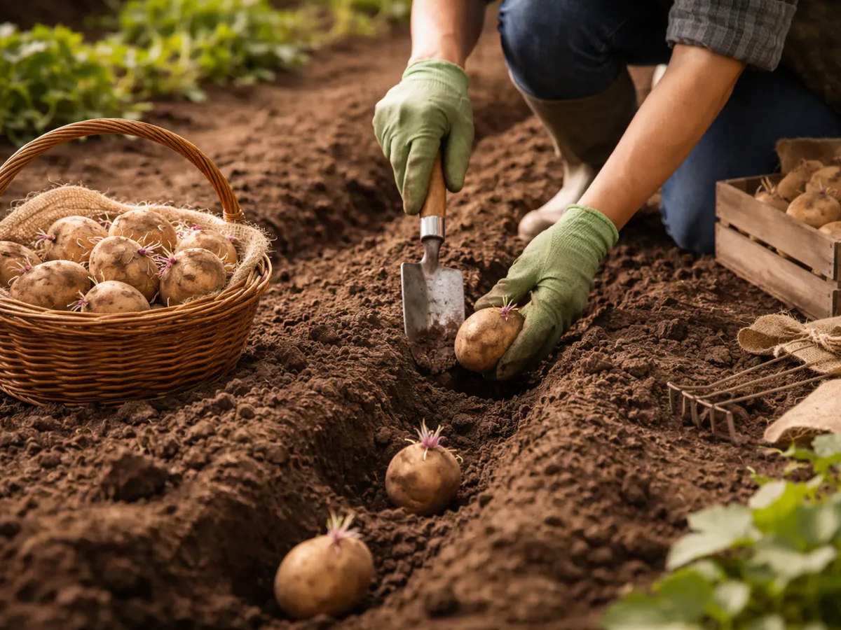 Клубни закладывают не глубоко, почти у поверхности, но в рыхлую землю. Высота гребня — примерно 20–25 см, расстояние между рядами больше обычного.