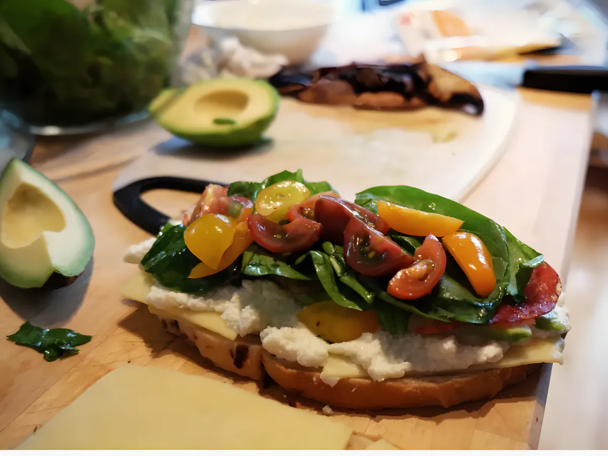 Всё начинается с кабачков. Их режут на кружочки толщиной в полсантиметра — не толще, иначе не прожарятся, не тоньше, чтобы не превратиться в чипсы. Обваливают в подсоленной муке и отправляют на раскалённую сковороду. Золотистая корочка — наш идеал. Пока кабачки шкварчат и остывают, есть время на остальное. Помидоры — кружочками такой же толщины. А вот теперь самое интересное — «адмиральская» намазка.