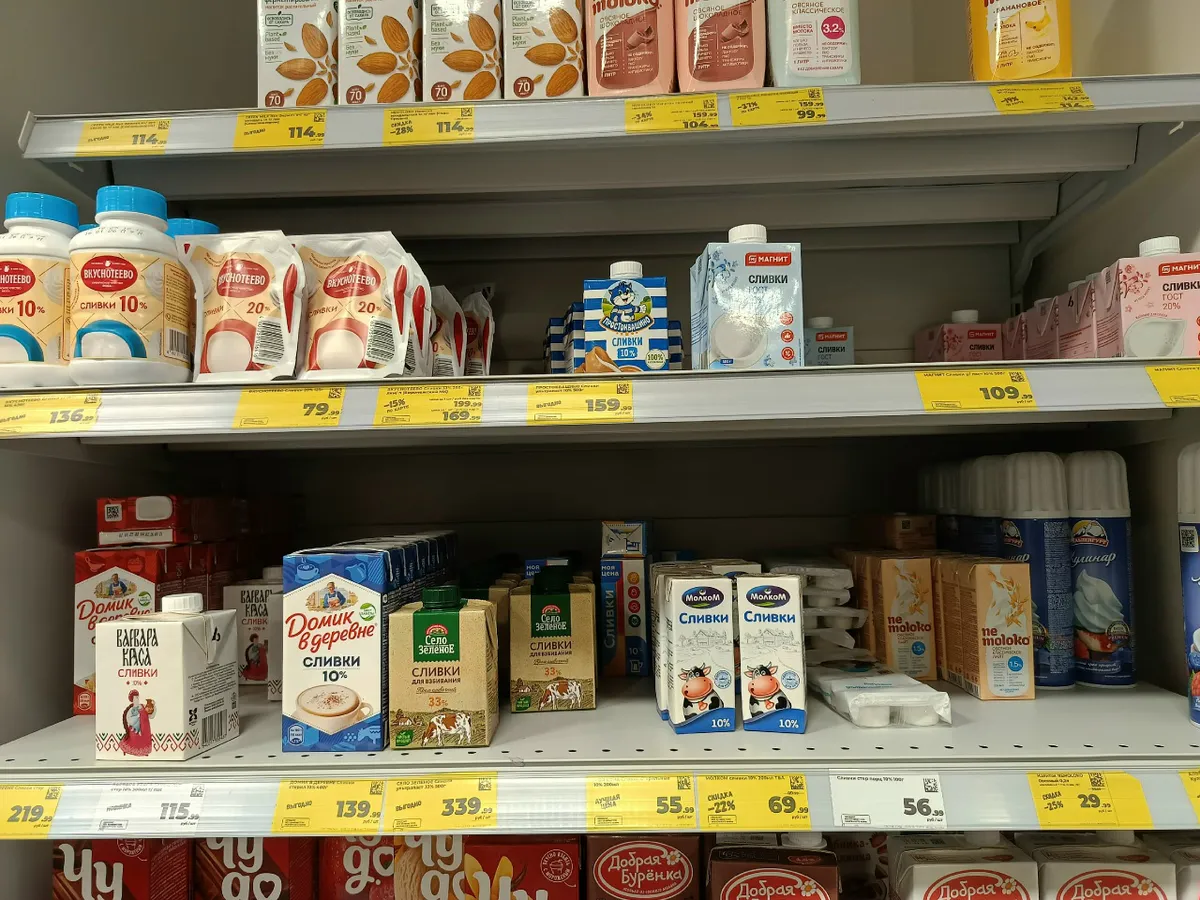 Цены в «Перекрестке» рассчитаны на обычного покупателя. Молоко можно купить по акции за 60–70 рублей, а есть и премиум-варианты за 300. Творожные сырки, сметана, йогурты — выбор большой, и каждый может найти что-то по бюджету. Хлеб варьируется от бюджетного до дорогого Harrys, хотя вкус последних нравится далеко не всем.