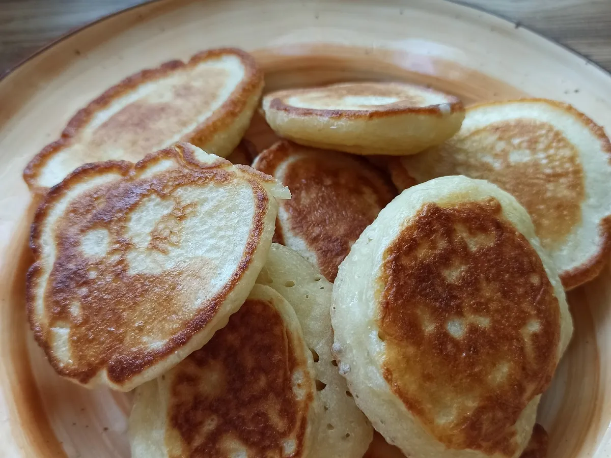 Оладьи получаются мягкие, пористые, будто внутри у них спрятан воздух. И что особенно приятно — на всё уходит меньше времени, чем на долгие раздумья, что бы такого приготовить к чаю.