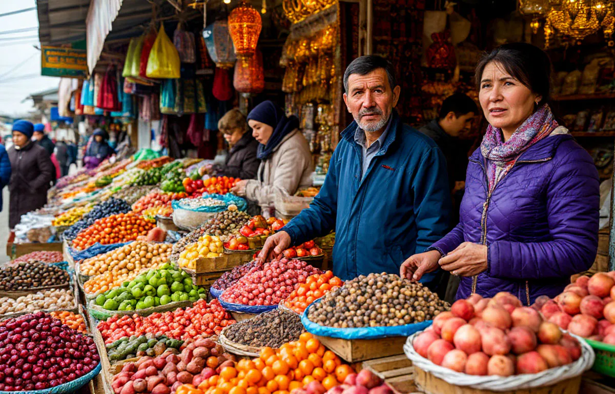 Ассортимент риса поражает воображение — с десяток сортов на любой вкус и кошелек. А вот гречку везут с Алтая — в местном климате она не растет. Посещение рынка — это еще и психологический опыт. Курс местного сума таков, что за тысячу рублей дают 150 000 сумов. Приходится ходить с толстыми пачками купюр, ведь карты здесь не принимают. Для европейцев это зрелище настолько непривычное, что для них даже организуют специальные экскурсии по базару.