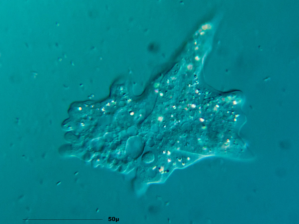 Самая известная — Naegleria fowleri. В медиа её прозвали «мозгоядной амёбой». Она проникает через нос, когда вы ныряете в тёплую воду. Она вызывает первичный амёбный менингоэнцефалит. Почти всегда летальный исход.