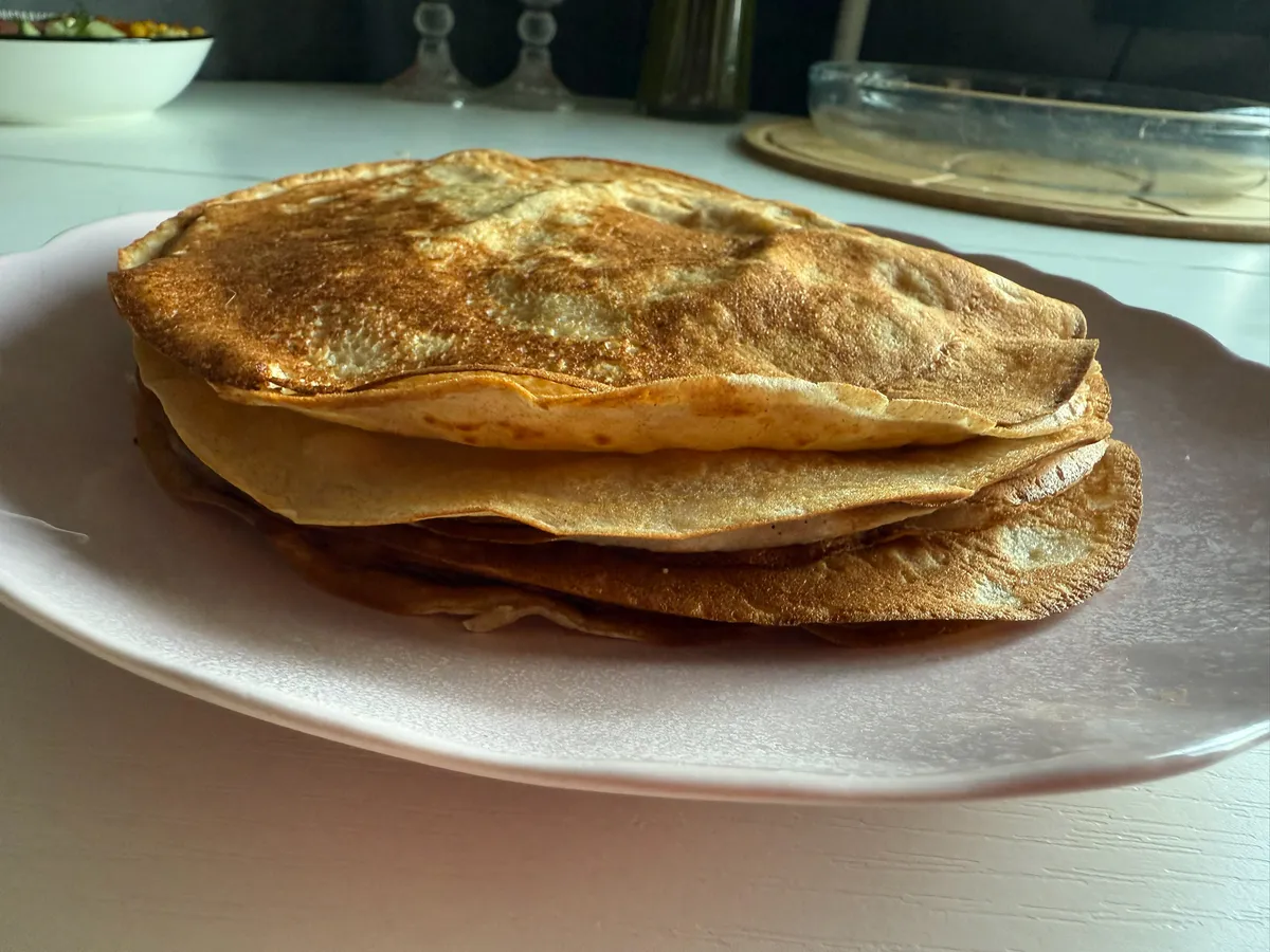 Секрет не в мистике, а в балансе. Пропорция 400/400/400 создаёт тесто оптимальной плотности и текучести. Муки достаточно, чтобы блин держал форму, но не становился резиновым. Молоко даёт нежность и румянец, вода — лёгкость и те самые ажурные дырочки. Четыре яйца — это связующее звено, структура. Всё вместе превращается в эластичную, гладкую массу, которая не рвётся на сковороде и послушно растекается по ней тончайшим кружевным слоем. Этот рецепт блинов легко запомнить ещё и потому, что он прощает небольшие отклонения. Чуть больше сахара — карамельнее корочка. Чуть больше соли — ярче вкус. Масло в тесте — вопрос привычки, но пара столовых ложек сделает блины ещё более отстающими от поверхности. Главное — не нарушать базовый каркас. Именно он и обеспечивает тот самый стабильный результат, когда двадцать блинов из сковороды выходят как на подбор: ровные, тонкие, вкусные.
