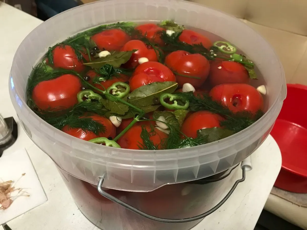 Всё складывается в одну миску. Сначала томаты, потом чеснок, перец, зелень. Сверху — соль, сахар, масло и уксус. Аккуратно, но тщательно всё перемешивается, чтобы каждый кусочек покрылся блестящими каплями маринада. Миска накрывается плёнкой и отправляется в холодильник. Минимум на два часа. А лучше — на три или четыре. За это время с помидорами происходит превращение: они становятся в меру острыми, невероятно ароматными, сок внутри смешивается с чесночным маслом. Просто и гениально.