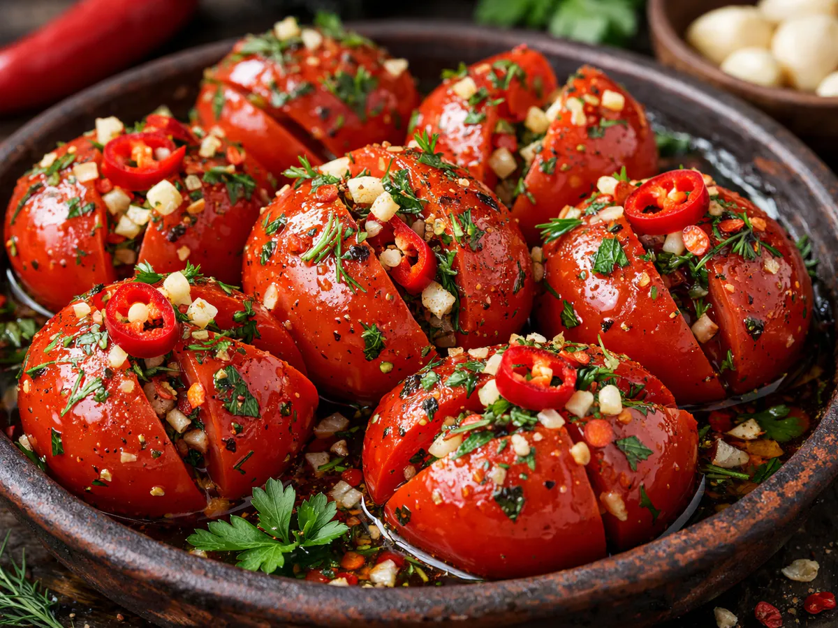Есть блюда-хамелеоны. Кажутся простыми, а на вкус — просто взрыв. Именно такая история с этими помидорами. Не маринованные в привычном смысле, а скорее «томлёные» в ядрёной пряной заправке. Эта простая огненная закуска — мой секретный козырь, когда гости уже на пороге, а удивлять хочется по-взрослому. Она каждый раз удивляет гостей, потому что от привычного вкуса помидора тут остаётся только намёк, а дальше начинается фейерверк.