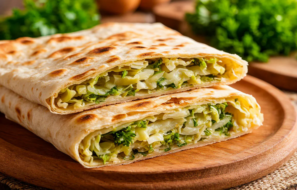Тонкий армянский лаваш — настоящая находка для тех, кто любит вкус пирожков, но не готов стоять у теста. Он легко сворачивается, держит форму и при этом даёт ту самую румяную корочку, ради которой обычно и затевается выпечка. Лаваш с капустой вместо пирожков выигрывает ещё и потому, что готовится быстрее: двадцать минут в духовке — и ужин готов.