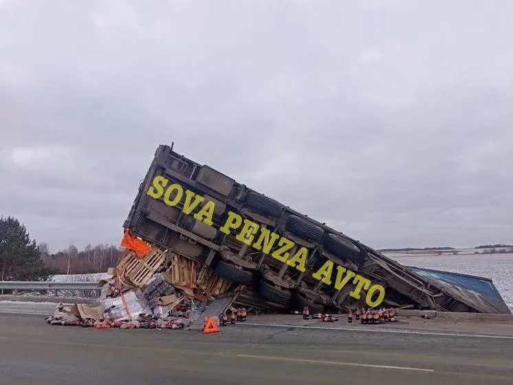 Свидетель аварии рассказал, что 18 ноября водитель фуры перевозил из Пензы в Саратов лимонад. Недалеко от ж/д станции грузовой автомобиль съехал с трассы и перевернулся. Предполагаемая причина происшествия – гололёдица на дороге. Из грузовика на дорогу высыпались бутылки с газировкой, похожей на «Кока-колу». На место аварии прибыли сотрудники ГИБДД, заторов нет.