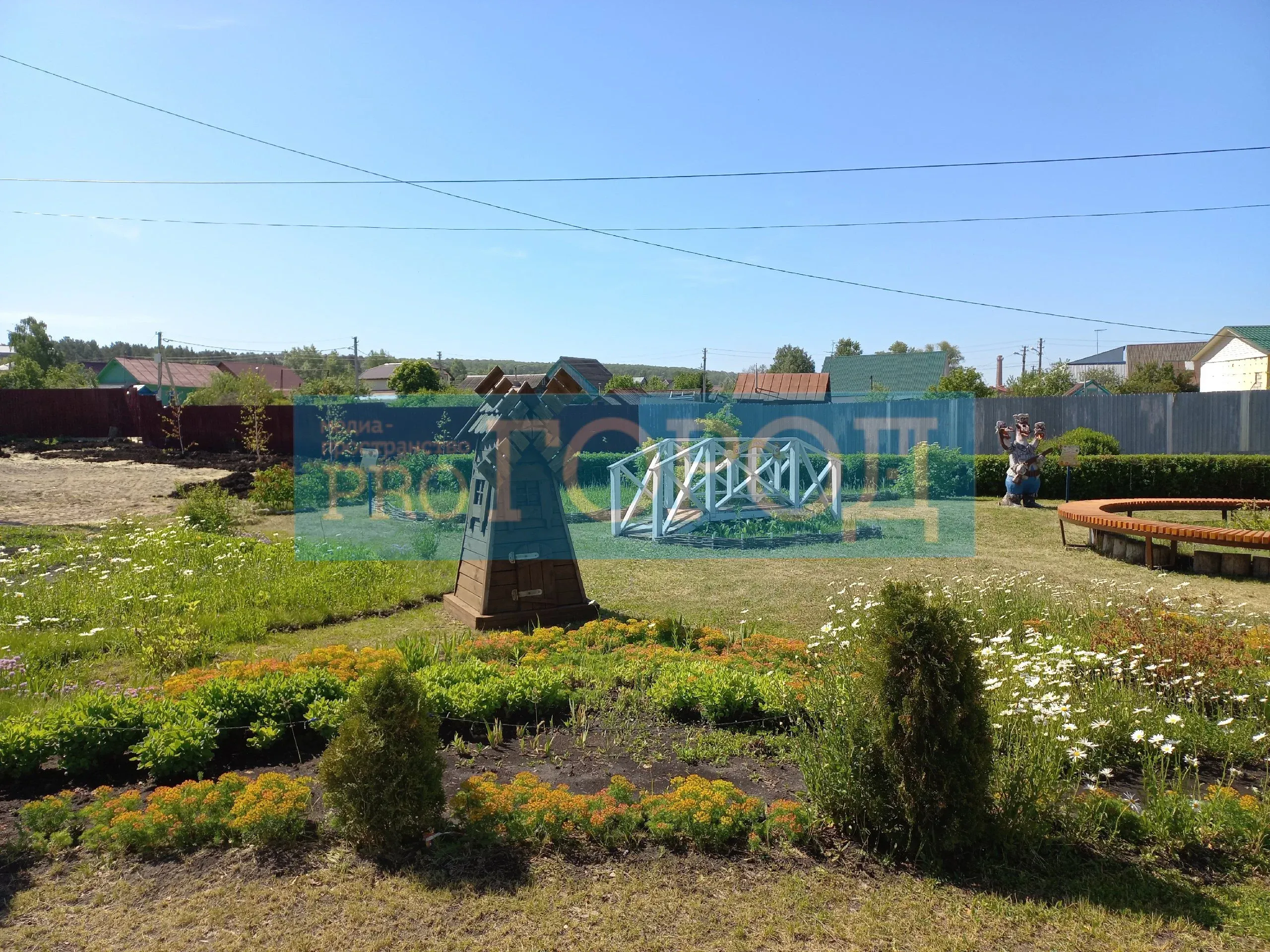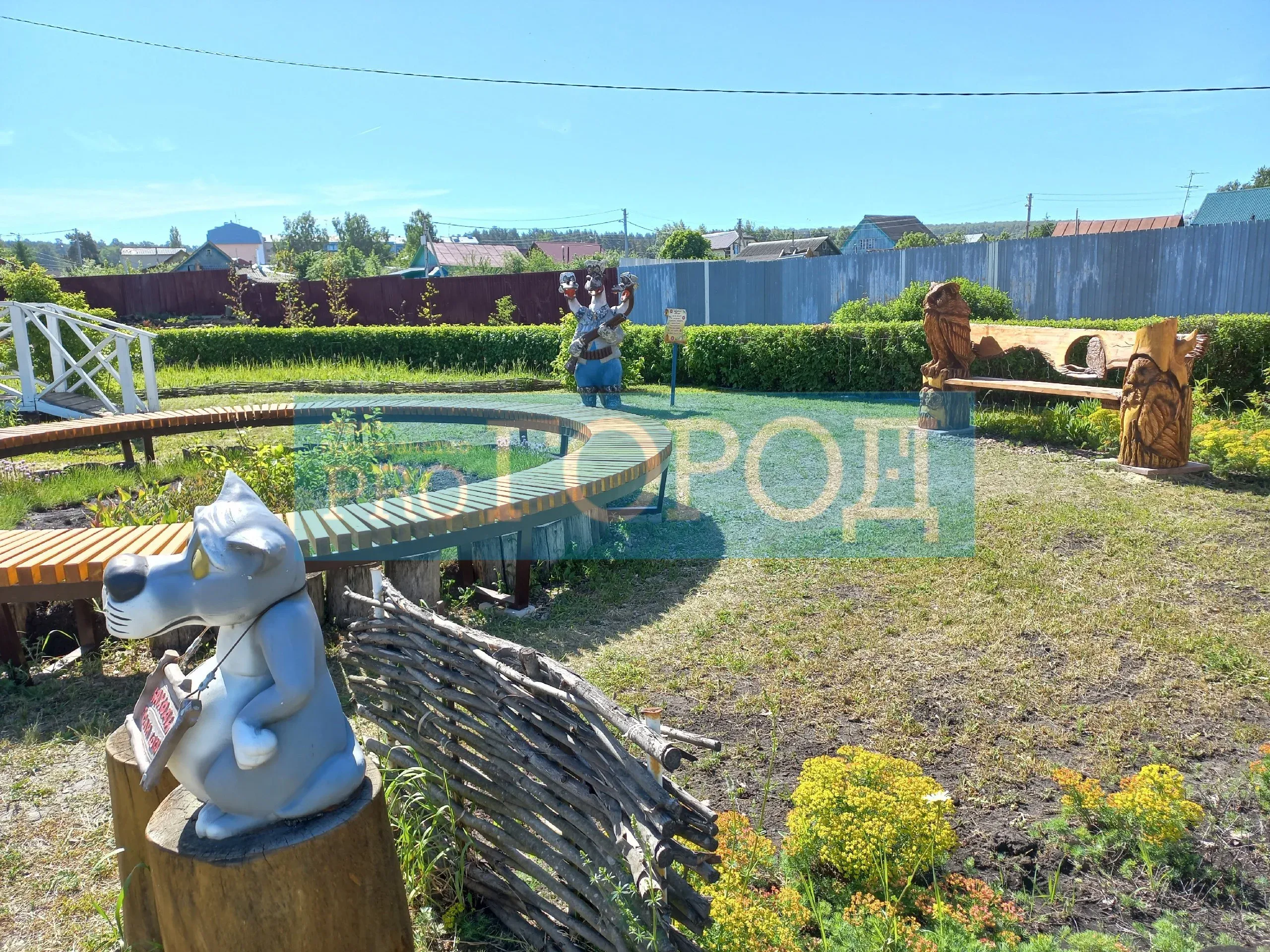 Своими силами Небесные благоустроили территорию: возвели «Мост влюбленных», мельницу, «Колодец изобилия» и другие объекты. Сейчас Небесные своими силами создают сквер «Ахунская сказка» со скульптурами сказочных персонажей из советских мульфильмов.