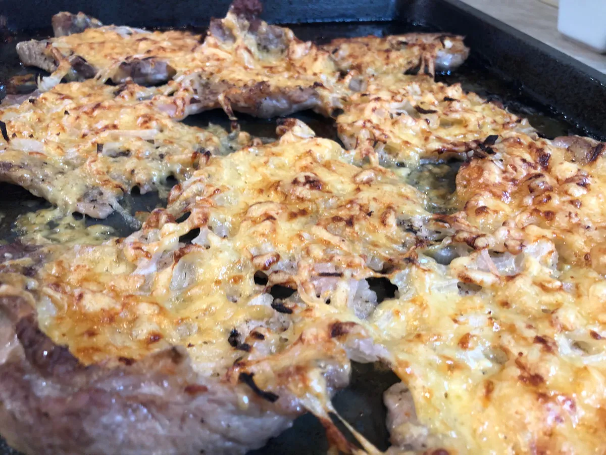 Пока мясо «доходит», готовится луковый соус. Две крупные луковицы измельчаются в блендере до состояния пюре. К ним добавляются две столовые ложки сметаны для нежности, чайная ложка горчицы для остроты и соль по вкусу. Все снова перемешивается. Противень смазывается маслом. На него выкладываются промаринованные кусочки мяса, а сверху — равномерным слоем распределяется луковая «шубка». Духовка, разогретая до 200 градусов, — идеальное место для финального преображения. Через 15 минут мясо достается, посыпается сотней граммов тертого сыра и возвращается еще на 10-15 минут, пока сыр не расплавится в румяную корочку. Аромат стоит такой, что домочадцы сбегутся на кухню еще до звона тарелок. Осталось только подать с любым гарниром — от картофельного пюре до простого листа салата.