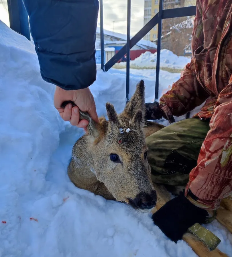Валерий Владимирович Сергеев заметил напуганное животное и, несмотря на риск, оперативно предоставил помощь. Совместными усилиями охотничьего инспектора Михаила Себряева и сотрудника судебного департамента Пензенской области Ильи Масленникова косулю удалось поймать, провести осмотр на наличие укусов, травм и повреждений.
