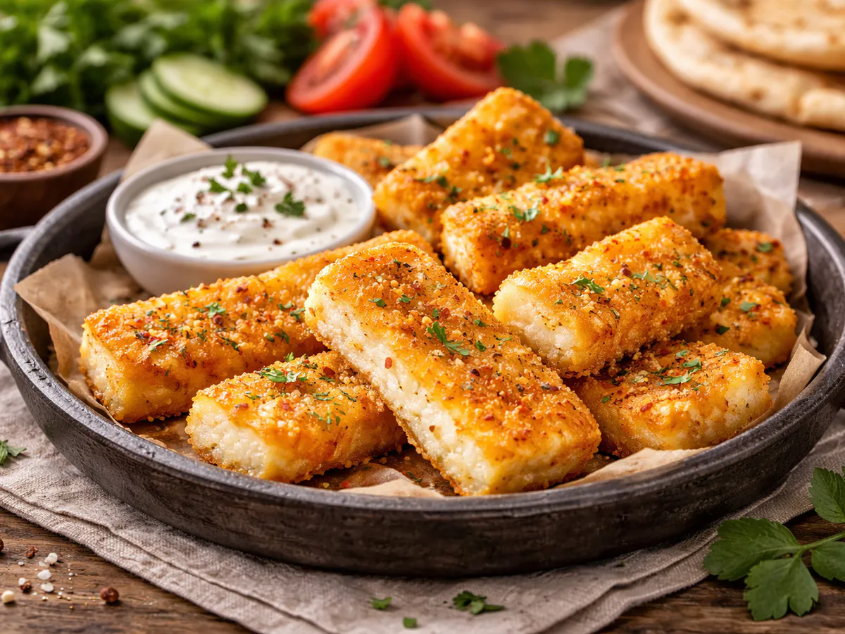 Подавать лучше сразу, пока сыр горячий и мягкий внутри. Холодным он тоже вкусный, но «с пылу с жару» — совсем другой эффект: хрустящая оболочка и нежная серединка.