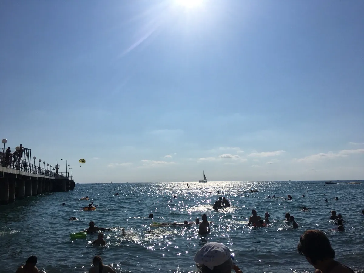 Море мелкое, поэтому уже в июне вода теплая — до 22 градусов и выше. У берега как «парное молоко». Вход пологий, без резкой глубины. Идеально для семей с детьми.