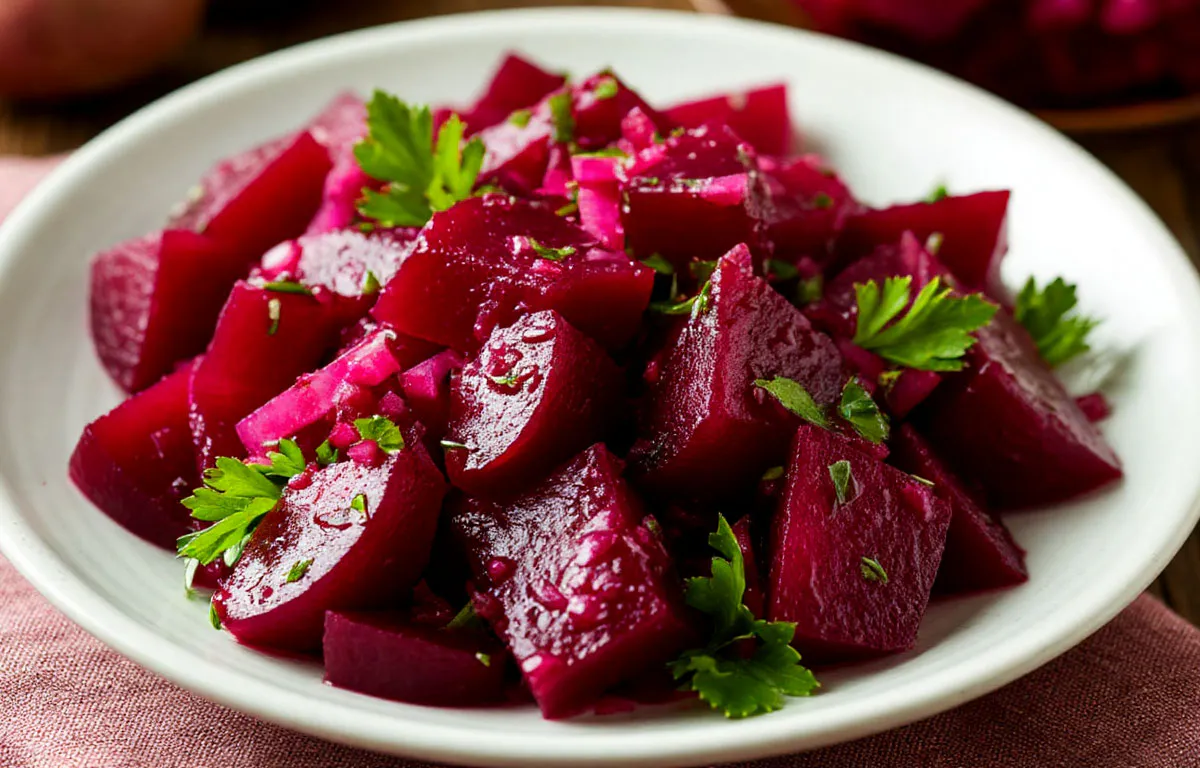 Свекольных салатов много, но этот — из тех, что удивляют. Вкус знакомый, но с поворотом. Попробовать стоит хотя бы ради эффекта «угадай ингредиент». Ни один гость не догадывается, что внутри есть не только свекла и огурцы.