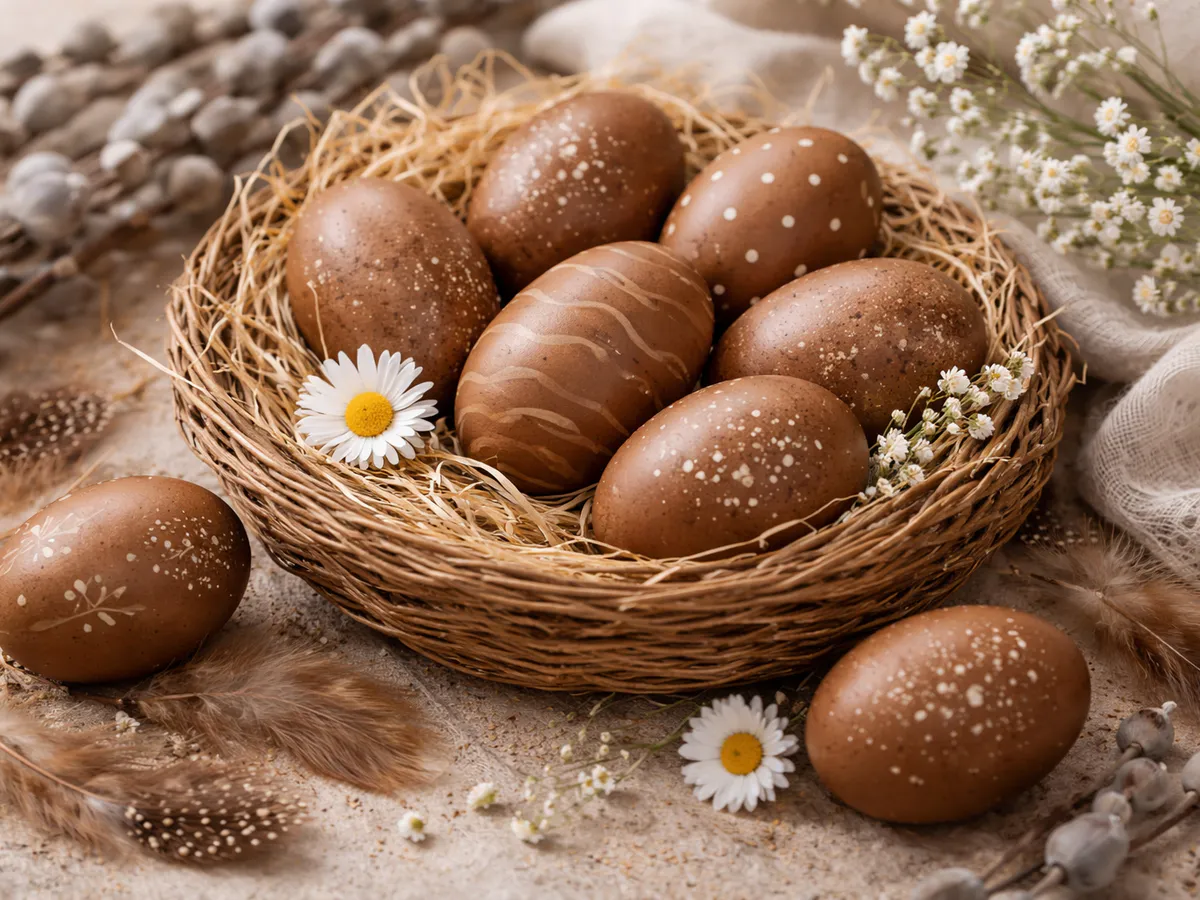 Пасхальные яйца получаются роскошного шоколадного оттенка — без всякой химии: выручает простой домашний напиток