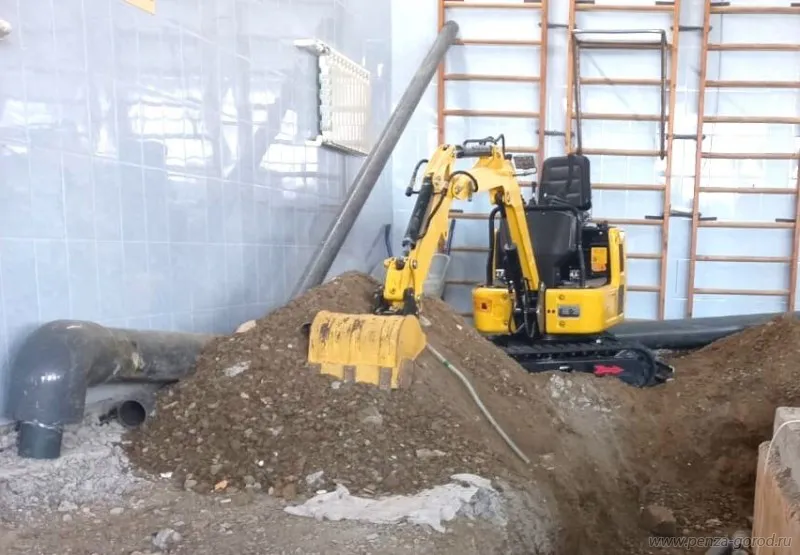 До этого были выполнены выемка грунта вокруг чаши, демонтаж существующего трубопровода. Сейчас рабочие завершают завод необходимого оборудования (насосов, запорной арматуры, труб для дальнейших мероприятий).