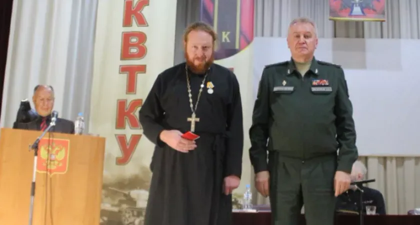 Награждения священнослужителей во время учебно-методических сборов с помощниками командиров по работе с верующими военнослужащими соединений и воинских частей Центрального военного округа. Они состоялись на базе Казанского высшего танкового командного училища