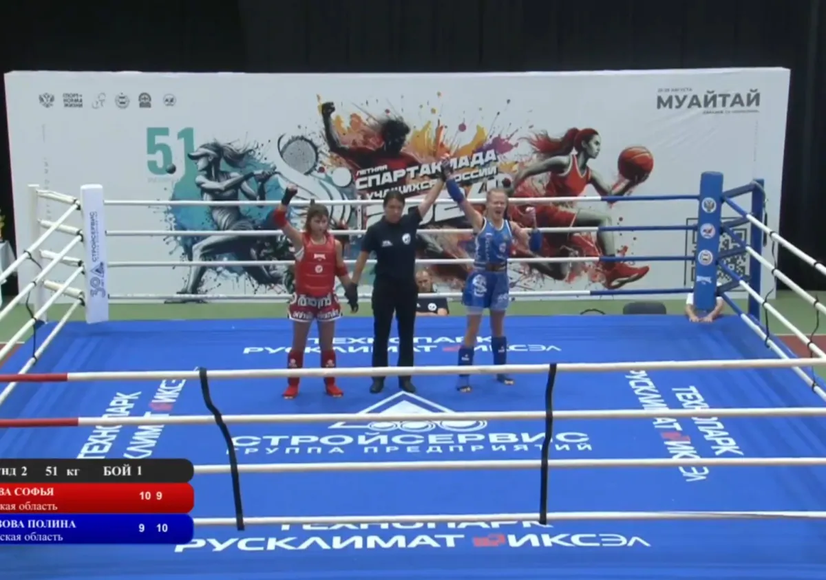 Спортсменка из Пензенской области Полина Морозова завоевала золото на соревнованиях по муай-тай в рамках Спартакиады учащихся России в весовой категории 51 кг.