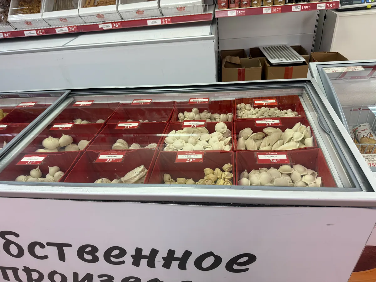 Первое, что бросается в глаза — упаковки с хинкали. Не одна, а сразу две-три. Килограммовые. Создаётся впечатление, что люди приходят за ними специально, а всё остальное — уже по списку. Что интересно, восторженных обсуждений у кассы не слышно. Нет этого «обязательно попробуй, это нечто!». Скорее, спокойное, почти деловое признание: «Беру постоянно, нормальные». Их хвалят за то, что не развариваются, держат форму и стоят адекватно. Начинка — предмет для дискуссий (кое-кто жалуется на подозрительные вкрапления), но тесто признаётся однозначно удачным. Миф о том, что все полуфабрикаты на один вкус, здесь не работает — хинкали явно выделились в отдельную, уважаемую категорию.