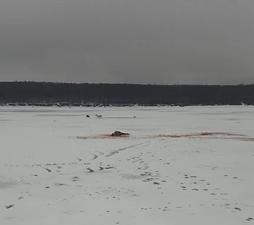 «Картина, больше похожая на кадр из фильма ужасов. Загрызенная бродячими собаками сибирская косуля лежит на льду. Рядом невозмутимо отдыхают два пса, которые, увидев рыбаков, помчали к северному берегу водохранилища. Этот случай, произошедший неподалеку от села Алферьевка Пензенской области, – лишь вершина айсберга, наглядно демонстрирующая серьезную проблему, забытую или, скорее, игнорируемую в погоне за гуманностью», - говорит мужчина.