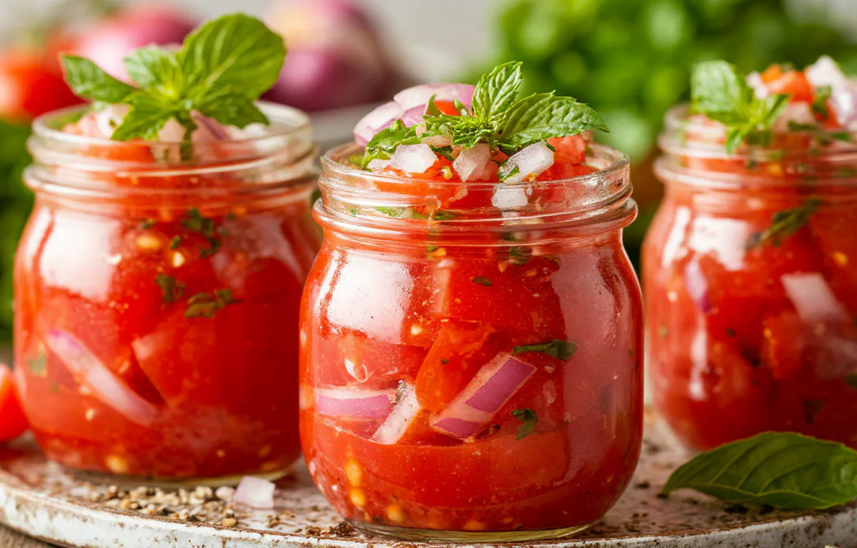 Салат из помидоров с луком: закрываю без стерилизации, а зимой он съедается первым — делюсь секретом быстрой закрутк
