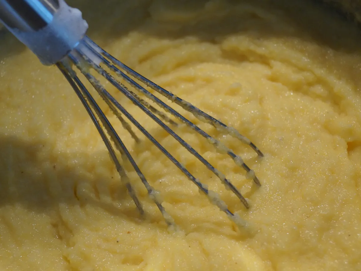 Когда картофель приготовится, воду сливают, а потом делают пюре с помощью картофелемялки. Пюре становится бархатным, мягким, почти облаком. Если хочется добиться идеальной текстуры, добавляют немного воды, в которой варился картофель — так пюре получается воздушным и лёгким, словно тает во рту.