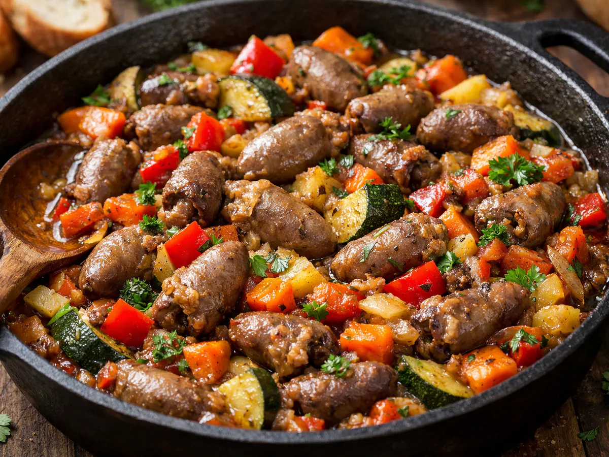 На выходе — не скромное блюдо из субпродуктов, а настоящий грузинский кулинарный шедевр. Густой, насыщенный соус, нежные, но упругие желудочки, яркость зелени и чеснока. Это идеальная подлива к рассыпчатому рису, пасте или картофельному пюре. И самое удивительное: гости никогда не угадают, из чего сделано это вкусное блюдо, пока им не раскроешь простой секрет. Проверено не раз.