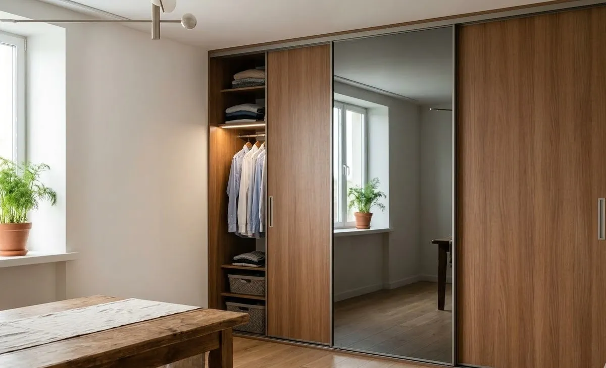Бюджетный вариант — рольставни, от 3 тысяч за метр. Средний — распашные дверцы из МДФ, покрашенные в цвет стен. Дорогой — дверцы с системой push-to-open, без ручек, незаметные.