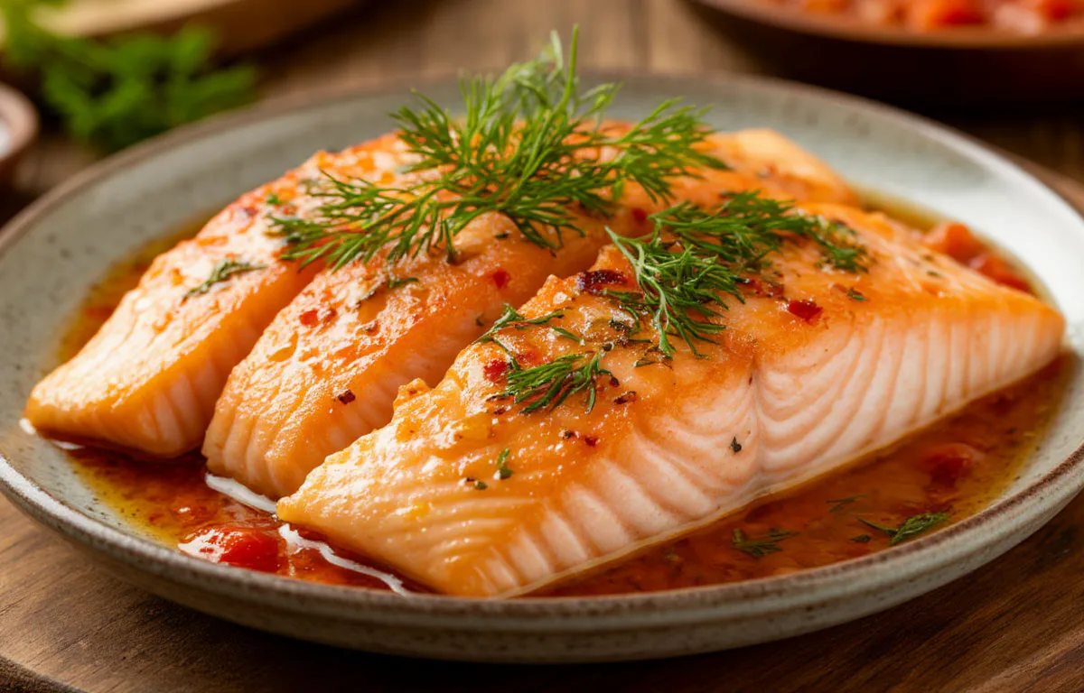Рецепт прост, диетичен и полезен: отсутствие жарки сохраняет максимум питательных веществ. Это идеальный вариант для быстрого ужина, когда хочется вкусно, сочно и без сложностей. Рыба в маринаде подойдёт и тем, кто следит за питанием, и тем, кто просто ценит гармонию вкуса и свежих ингредиентов. Подача с отварным рисом, запечённым картофелем или свежим салатом превращает блюдо в полноценный, красивый ужин, где каждая ложка дарит летнее настроение, аромат и ощущение настоящей домашней кулинарии.