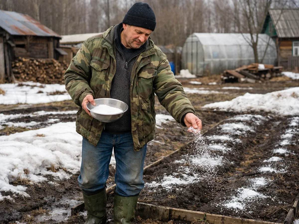 Со сходом снега рассыпаю на грядки 3 пачки соли — и не мучаюсь, как соседи: можно отдыхать всю весну
