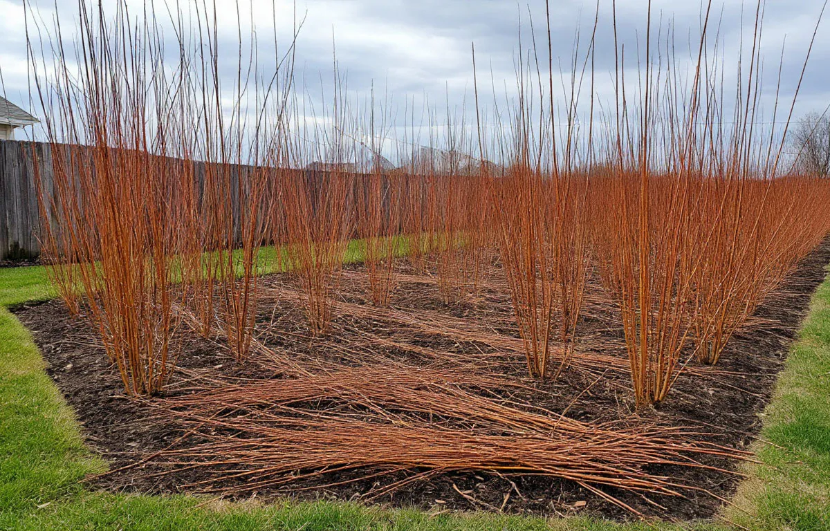 Обычная ива, чьи прутья легко укореняются, становится основой для мощного зеленого барьера. Весь посадочный материал обходится ровно в ноль рублей — его нарезают ранней весной у ближайшего водоема, пока сок не пошел. Диаметр — с палец, длина — сантиметров шестьдесят. Верхушку срезают наискосок, чтобы вода стекала, нижний конец оставляют ровным.