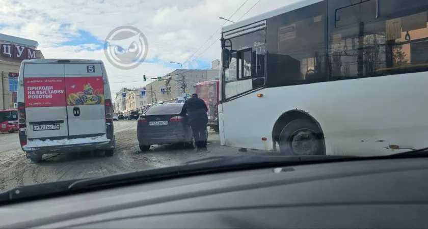 Столкновение автобуса и легковушки на перекрестке в центре Пензы вызвало пробку