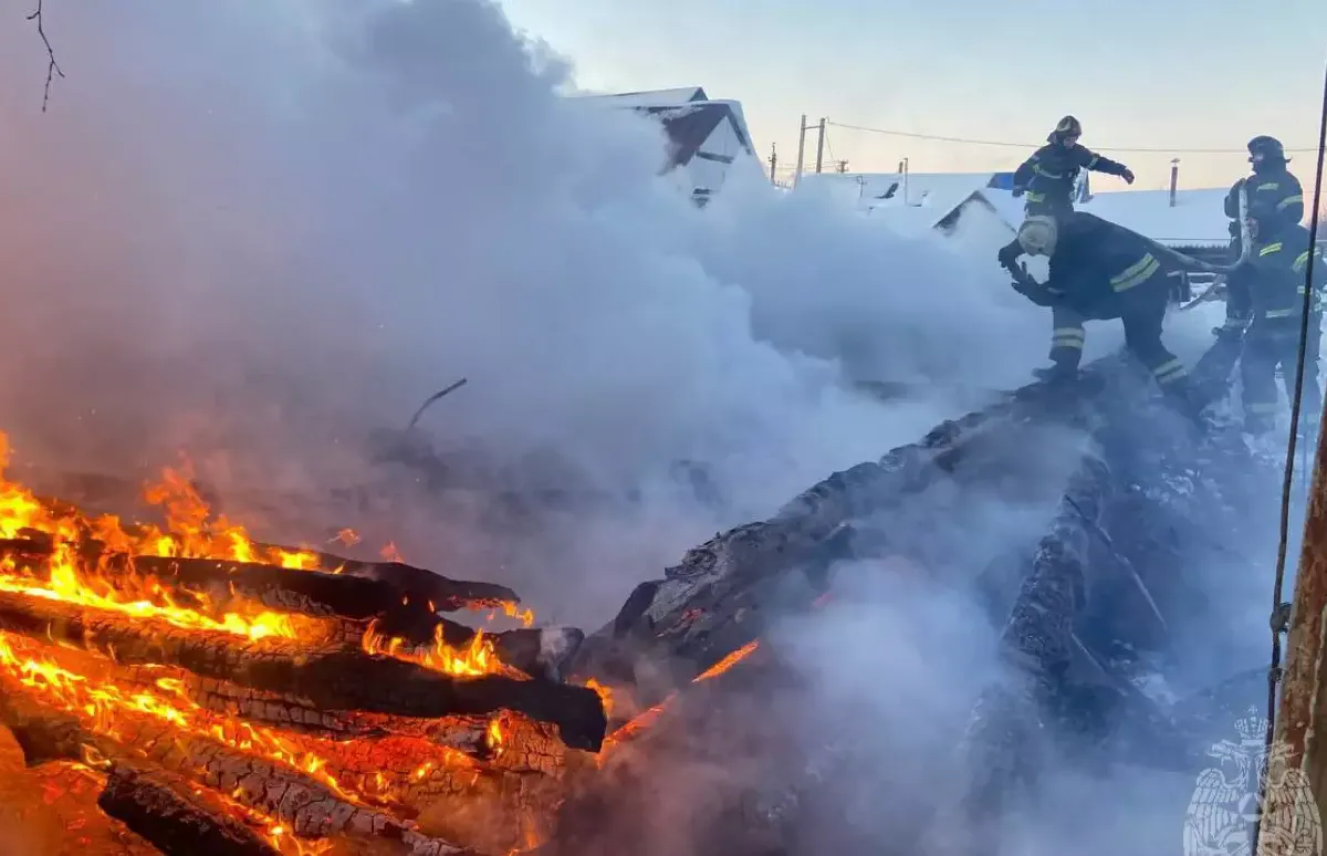 Сигнал о возгорании в срубовом одноэтажном доме поступил на пульт спасателей в 16:09. На тушение пожара прибыли 15 огнеборцев на шести спецмашинах.