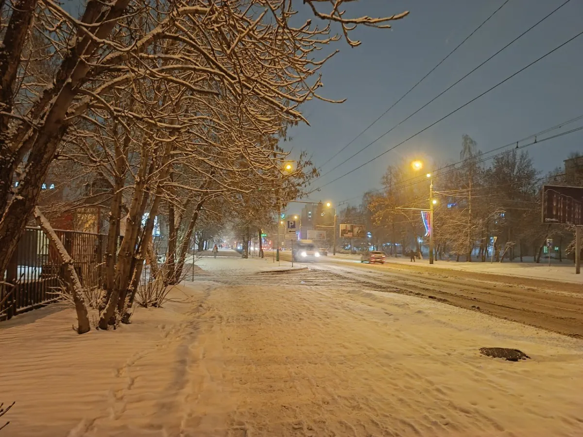 Утром в городе ожидается около −4 градусов и снег. По ощущениям будет значительно холоднее — до −10 градусов, а южный ветер усилится до 5 метров в секунду.