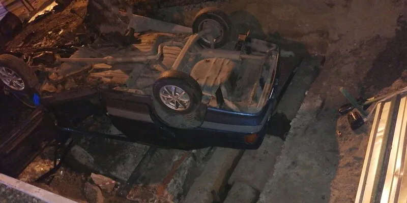 В Пензе на проспекте Победы автомобиль провалился в котлован