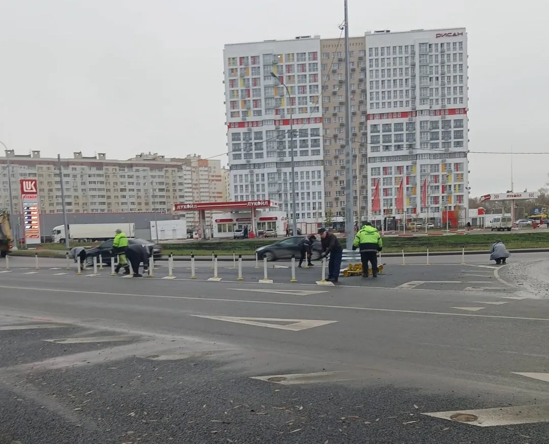 В Пензе сотрудники МБУ «Пензавтодор» убрали сигнальные столбики на кольцевой развязке на ГПЗ