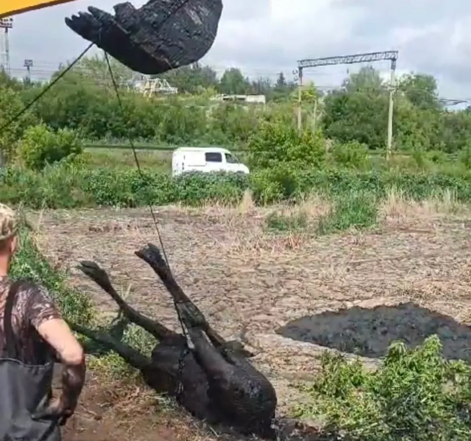 На помощь лосю пришли сотрудники регионального Минлесхоза. Для того, чтобы вызволить лося из котлована, потребовался экскаватор.