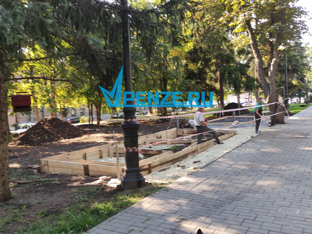 «Прямо на зелёной территории сквера начали ликвидировать зеленые насаждения. Повреждены покров газонов и корни старых елей», - отмечает пензячка.