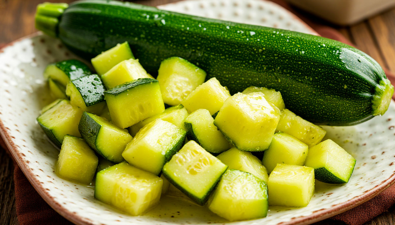 Если кабачки нужны для оладий, котлет или супа, их лучше натереть на крупной терке или нарезать мелкими кубиками. После этого массу обязательно отжимают, избавляясь от излишков влаги. Мелкая фракция замерзает почти мгновенно, и ледяные кристаллы просто не успевают вырасти, чтобы навредить. Такой способ заморозки кабачков идеален для блюд, где важна не форма, а сам овощ в составе массы.