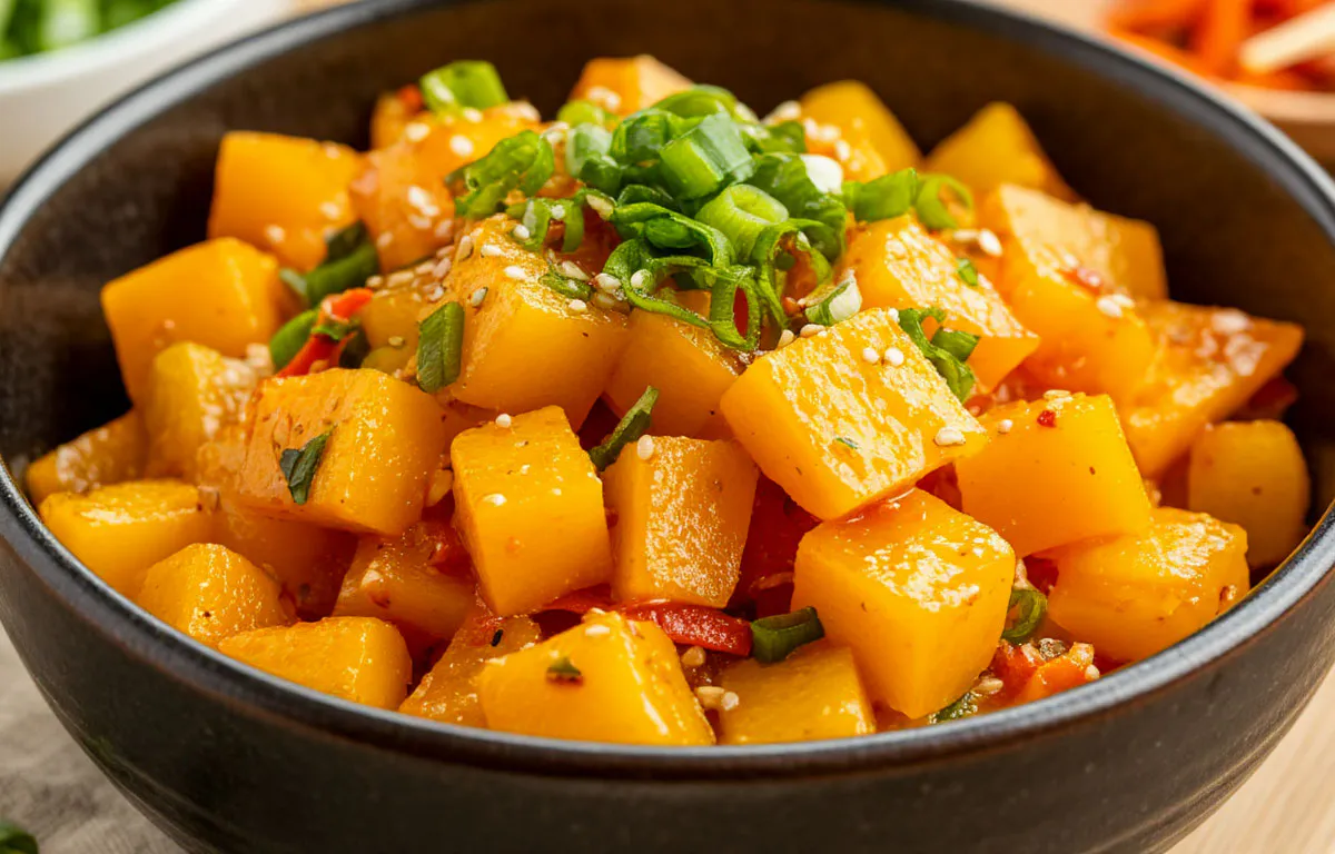 Волшебная заправка: Сделайте в центре овощной смеси углубление. Положите туда измельченный чеснок, сахар, кориандр, паприку и острый перец. В маленькой сковороде сильно разогрейте масло (почти до дымка). Осторожно вылейте РАСКАЛЕННОЕ масло прямо на горку специй в углублении. Будет шипеть и пахнуть невероятно! Это "запекает" специи в масле, раскрывая аромат.