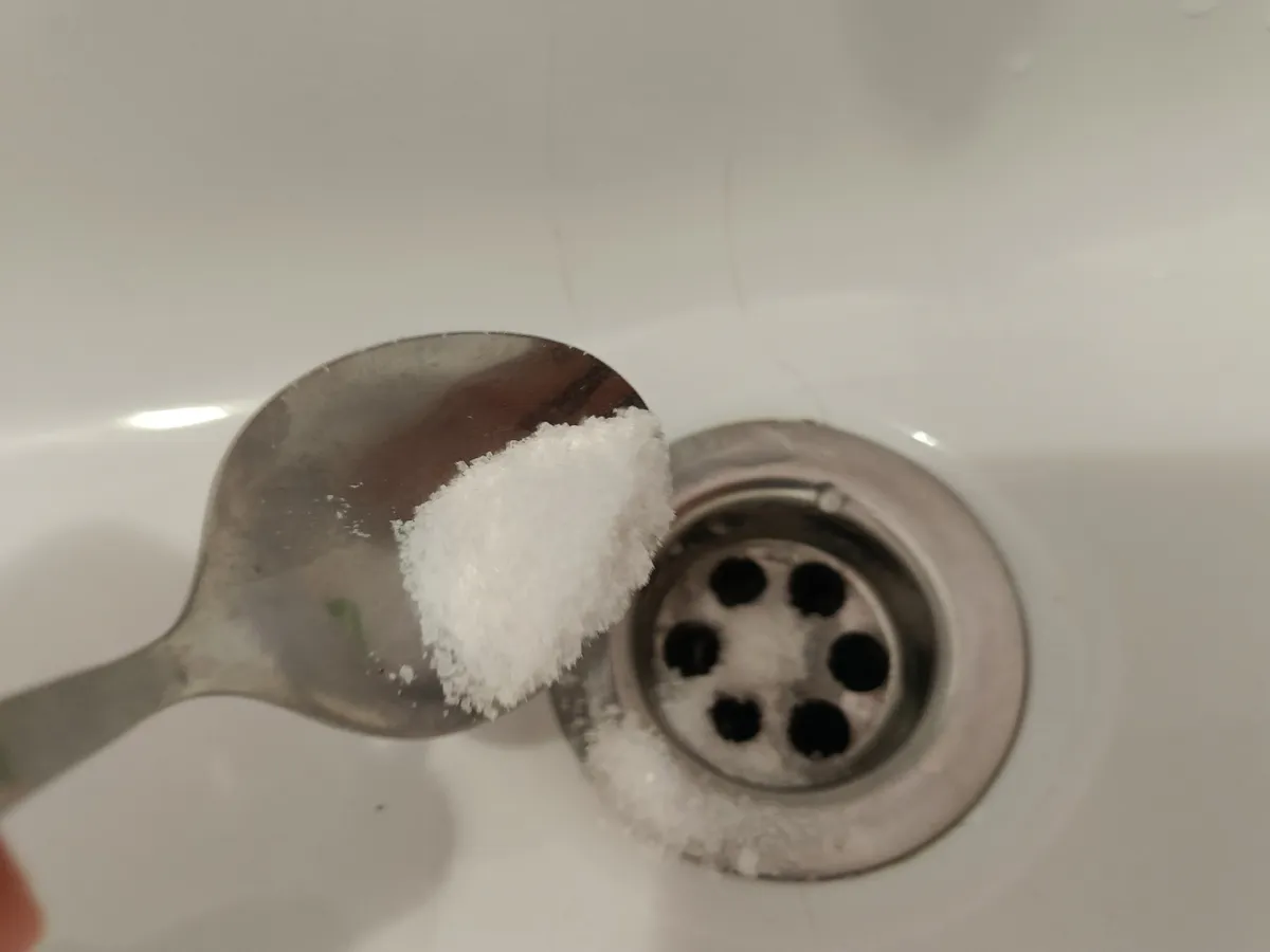 Нам понадобятся всего лишь соль и сода. Нужно взять по полстакана того и другого. Хорошо их перемешать, а затем взять 2 ложки смеси и засыпать в слив. Если в раковине есть какая-то вода, то ее лучше удалить. Тогда средство начнет работать не на поверхности, а уже непосредственно в самой трубе.