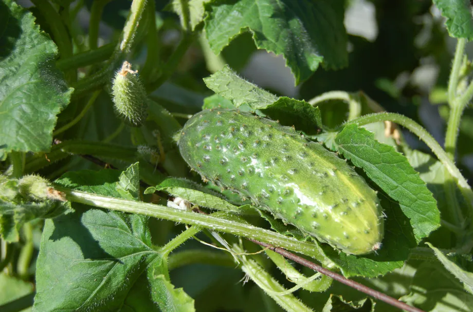 - Собирайте огурцы почаще, каждые день-два. Переросшие тормозят рост новых.